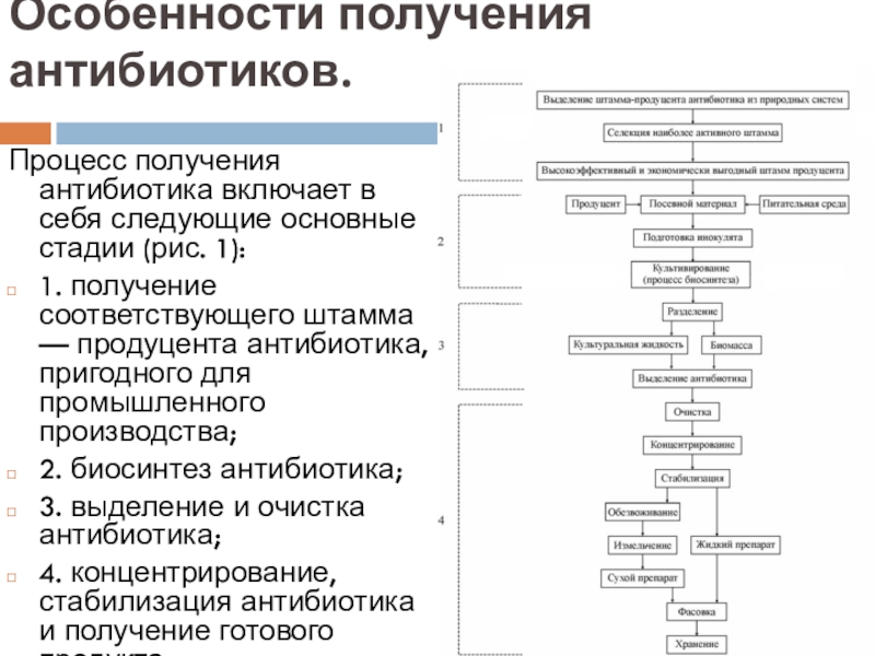 1. получение соответствующего штамма — продуцента антибиотика, пригодного