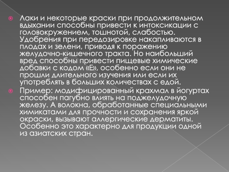 Слайд 14Лаки и некоторые краски при продолжительном вдыхании способны привести к