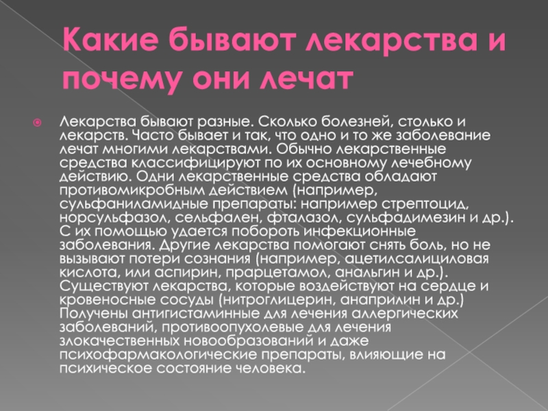 Слайд 4Какие бывают лекарства и почему они лечат