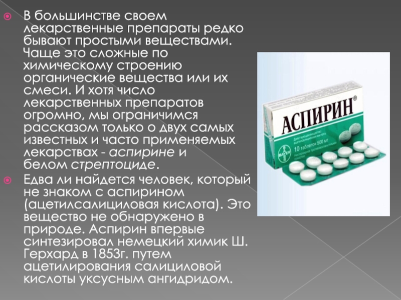 Слайд 5В большинстве своем лекарственные препараты редко бывают простыми веществами. Чаще