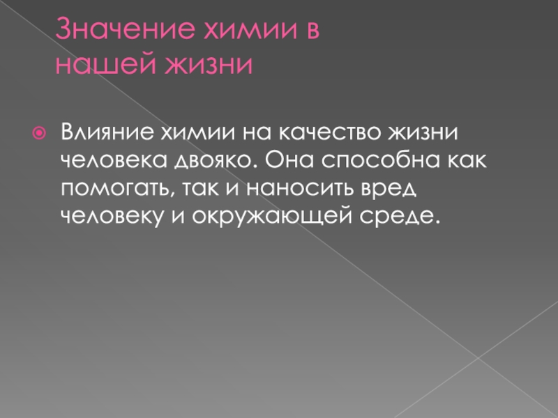 Влияние химии на качество жизни человека