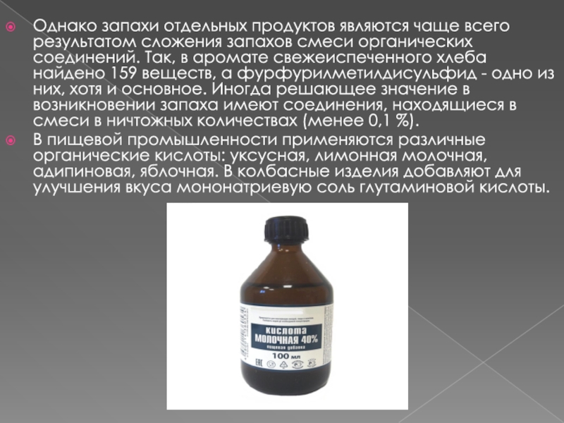 Слайд 10Однако запахи отдельных продуктов являются чаще всего результатом сложения запахов