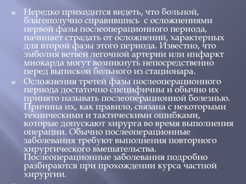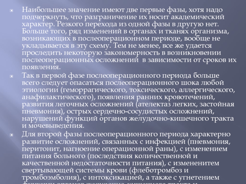 фазы послеоперационного периода, начинает страдать от осложнений, характерных для второй