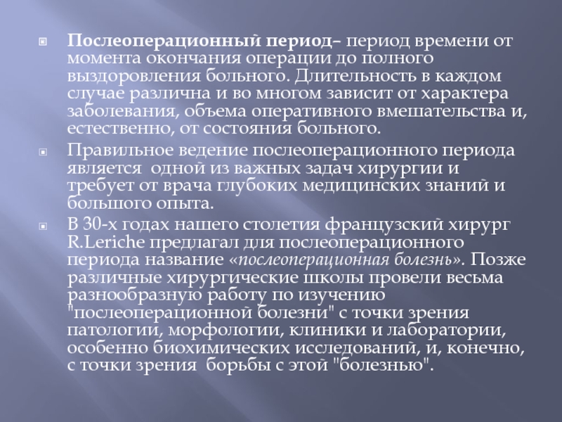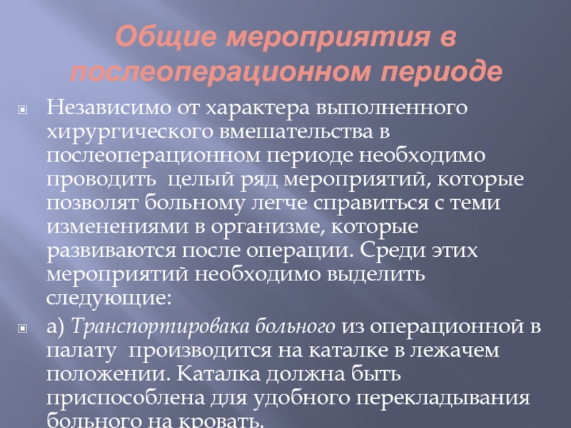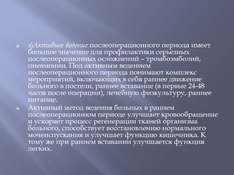 Слайд 44з)Активное ведение послеоперационного периода имеет большое значение для профилактики серьезных