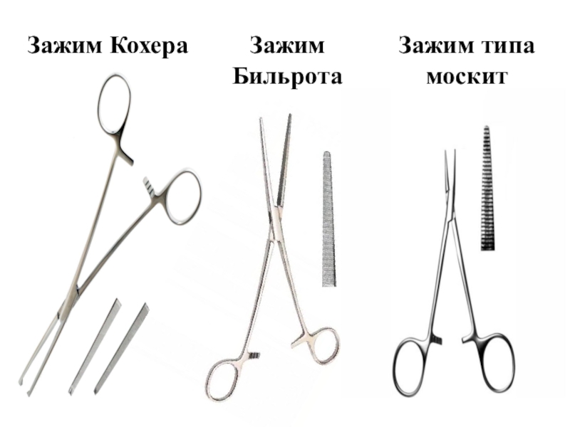 и раздавливающие желудочные и кишечные зажимы, лопаточка Буяльского, пластина Ревердена).