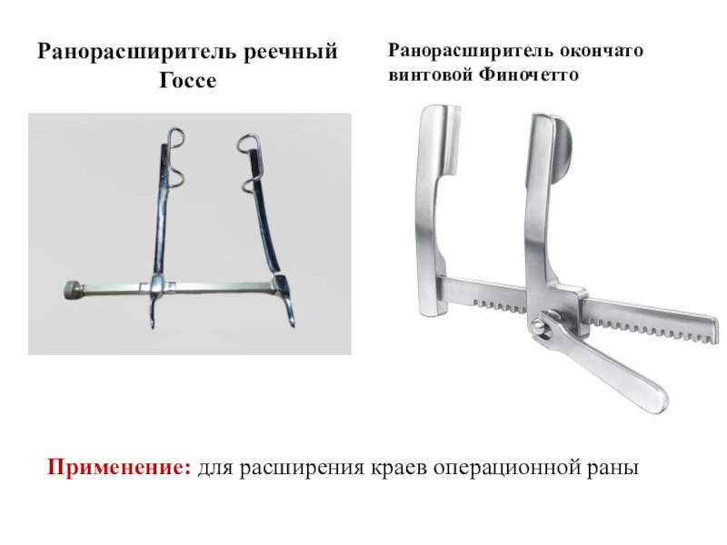- Для создания экспозиции (ранорасширители, крючки, зеркала)
