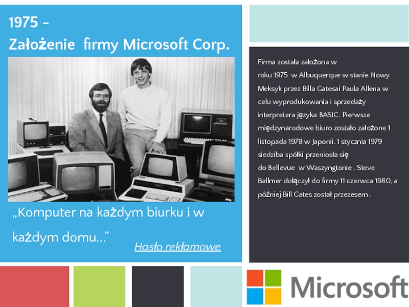 języka BASIC. Pierwsze międzynarodowe biuro zostało założone 1 listopada 1978 w Japonii. 1 stycznia 1979 siedziba spółki przeniosła się do Bellevue w Waszyngtonie . Steve Ballmer dołączył do firmy 11 czerwca 1980, a później Bill Gates został przezesem .Working together on the healthcare puzzle