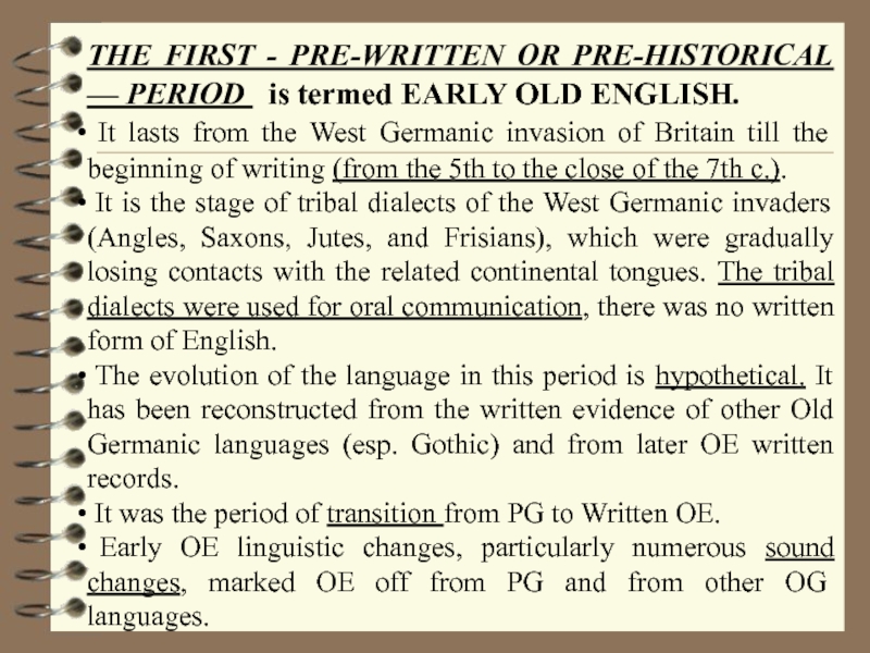 Слайд 10THE FIRST - PRE-WRITTEN OR PRE-HISTORICAL — PERIOD is