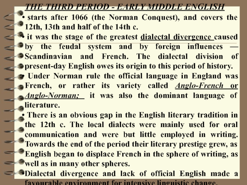 Слайд 13THE THIRD PERIOD - EARLY MIDDLE ENGLISH