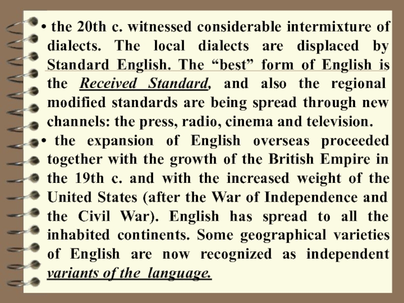 Слайд 22 the 20th c. witnessed considerable intermixture of dialects. The
