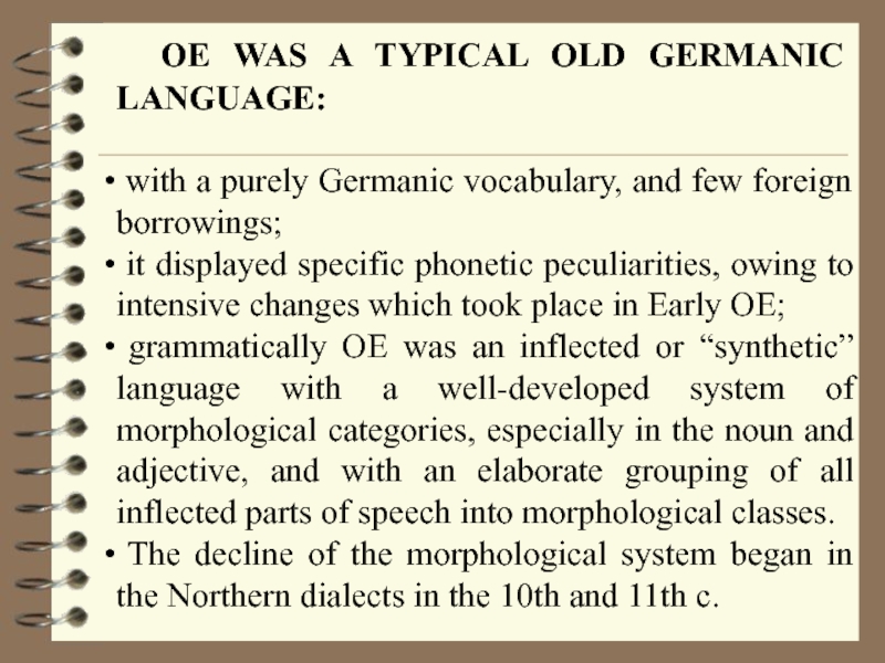 Слайд 12 OE WAS A TYPICAL OLD GERMANIC LANGUAGE: