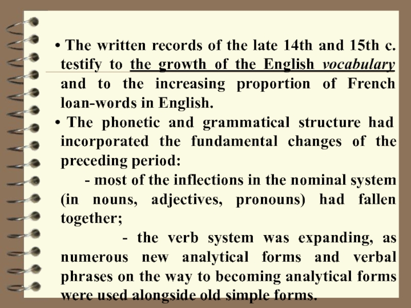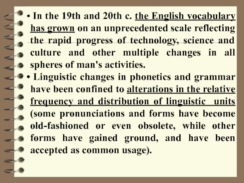 the growth of the vocabulary (new words from internal and external sources enriched the vocabulary);