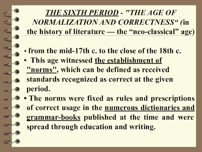 Слайд 19THE SIXTH PERIOD - "THE AGE OF NORMALIZATION AND CORRECTNESS“