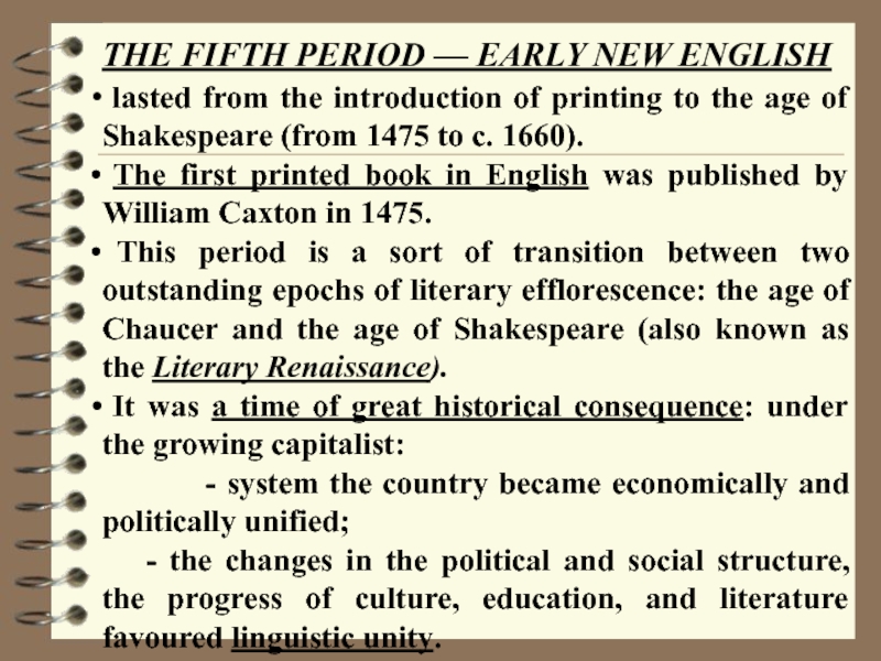 Слайд 17THE FIFTH PERIOD — EARLY NEW ENGLISH