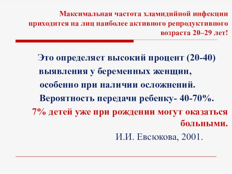 Слайд 7 Максимальная частота хламидийной инфекции приходится на лиц наиболее активного репродуктивного