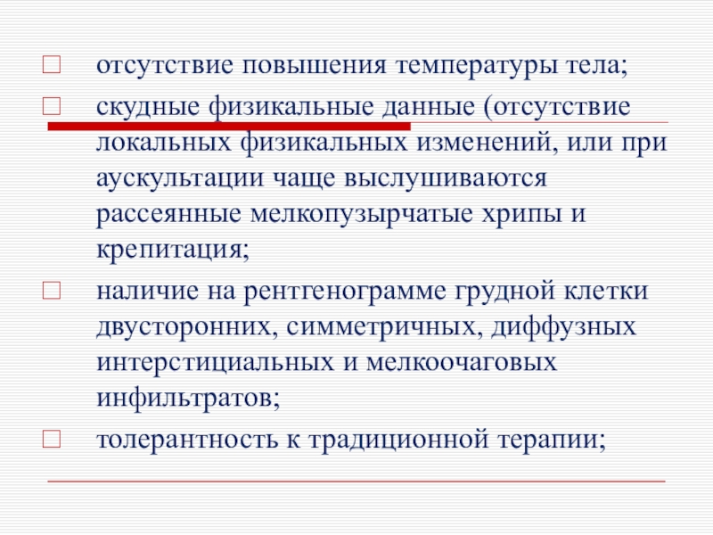 скудные физикальные данные (отсутствие локальных физикальных изменений,