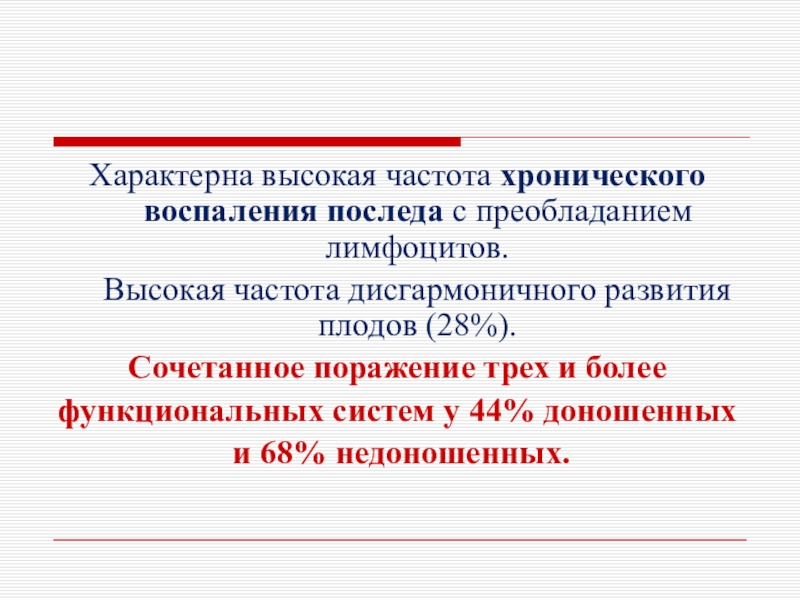 Характерна высокая частота хронического воспаления последа с преобладанием лимфоцитов.