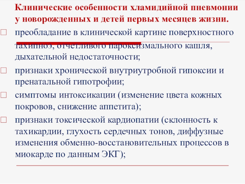 Слайд 31 Клинические особенности хламидийной пневмонии у новорожденных и детей первых месяцев