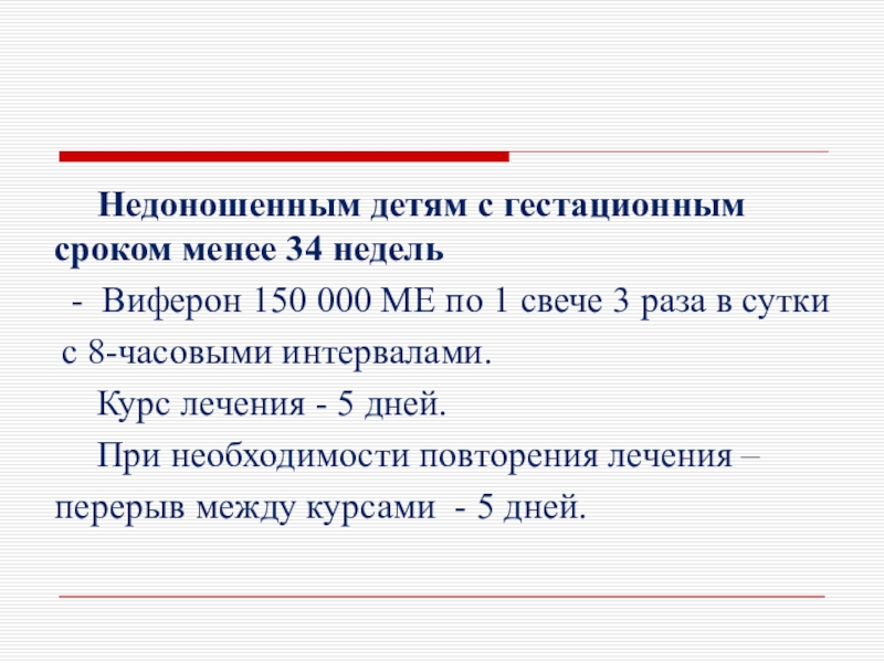 Слайд 38 Недоношенным детям с гестационным сроком менее 34 недель