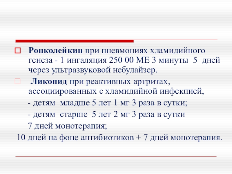 Слайд 39Ронколейкин при пневмониях хламидийного генеза - 1 ингаляция 250 00