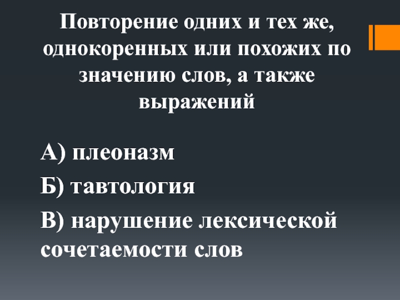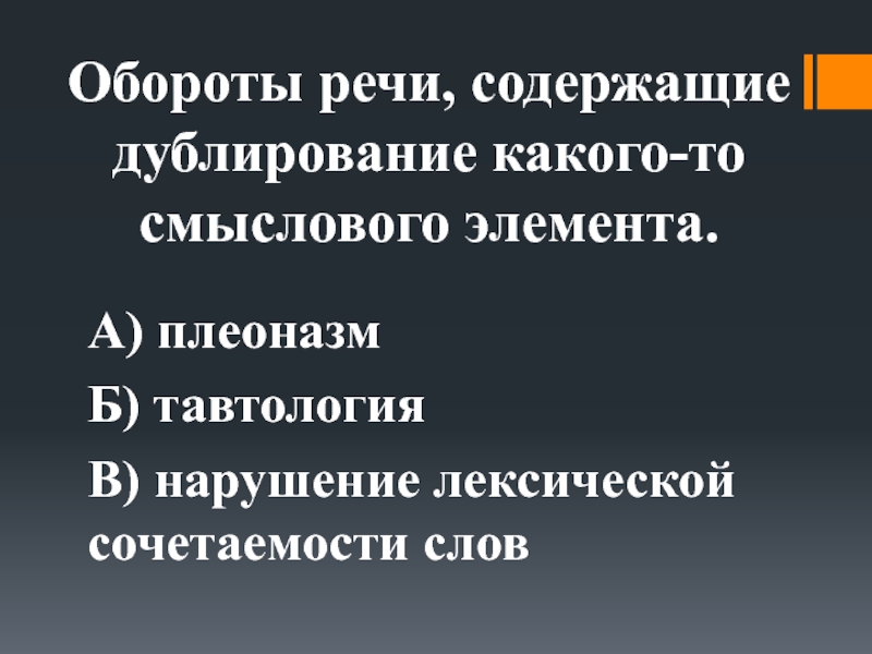 Слайд 6Обороты речи, содержащие дублирование какого-то смыслового элемента.
