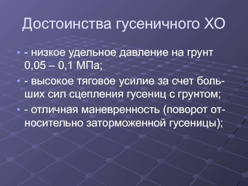 - отличная маневренность (поворот от-носительно заторможенной гусеницы);