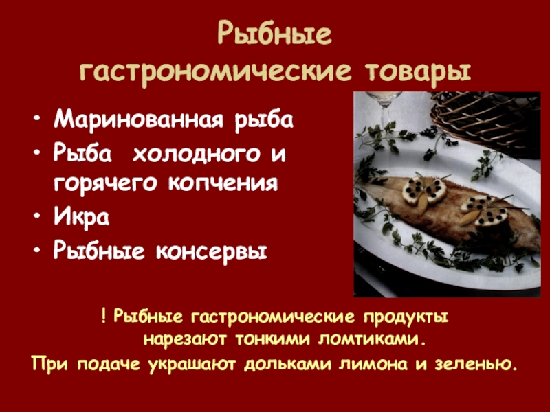 Слайд 3Рыбные гастрономические товары