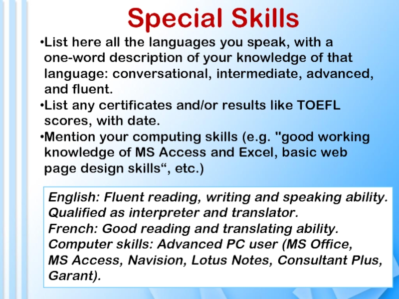 Special skills (Специальные навыки)