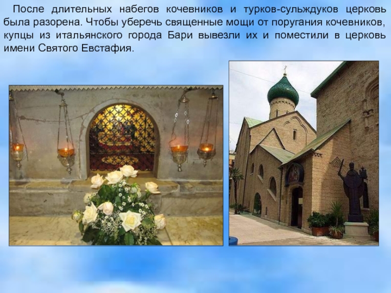 Слайд 15 После разорения храма и перенесения мощей Святого Николая воды