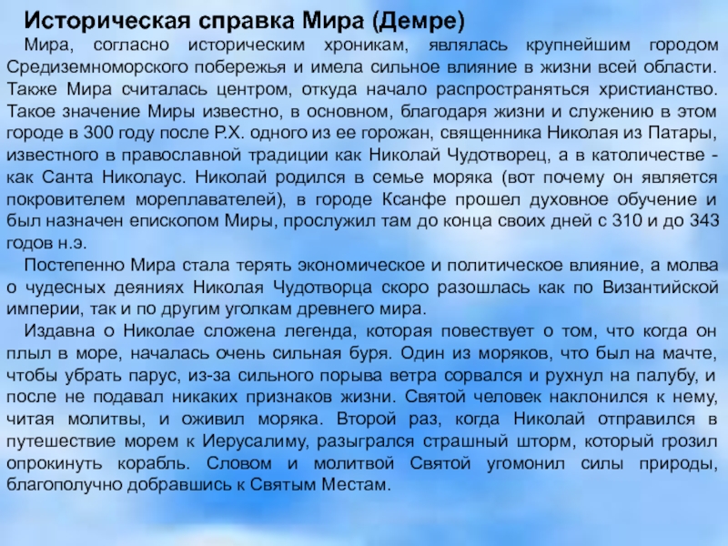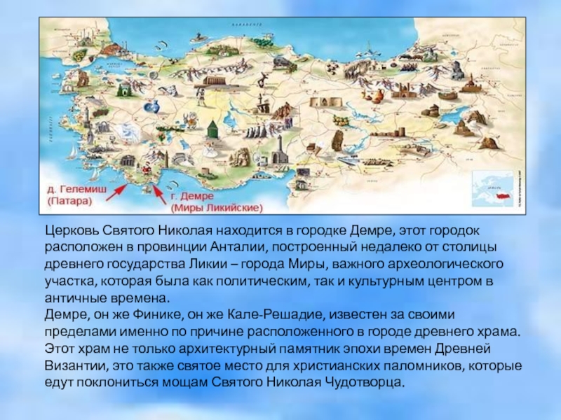 Слайд 5Церковь Святого Николая находится в городке Демре, этот городок расположен