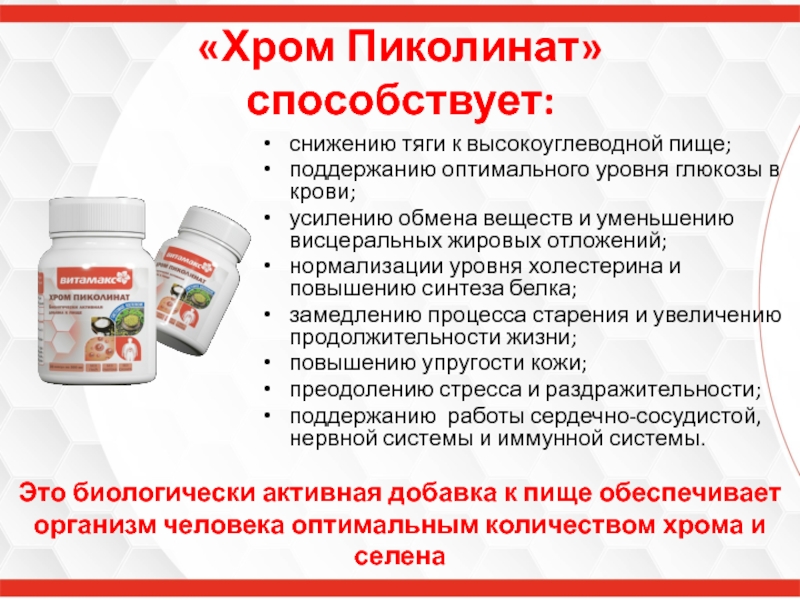 Это биологически активная добавка к пище обеспечивает организм человека оптимальным количеством хрома и селена
