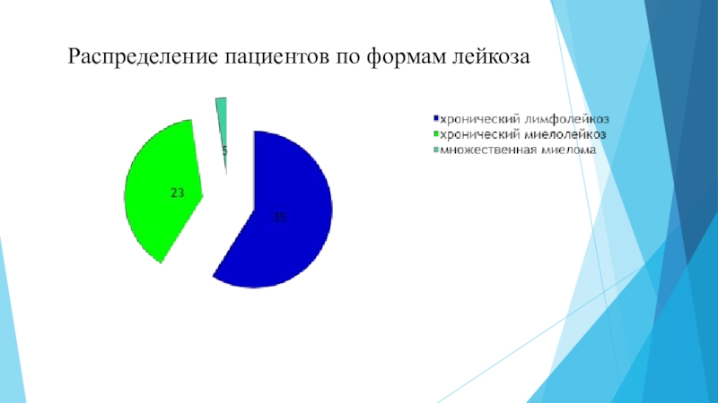 35 пациентов страдают хроническим лимфоцитарным лейкозом(ХЛЛ), 35- хроническим миелолейкозом(ХМЛ), 5- множественной миеломой.