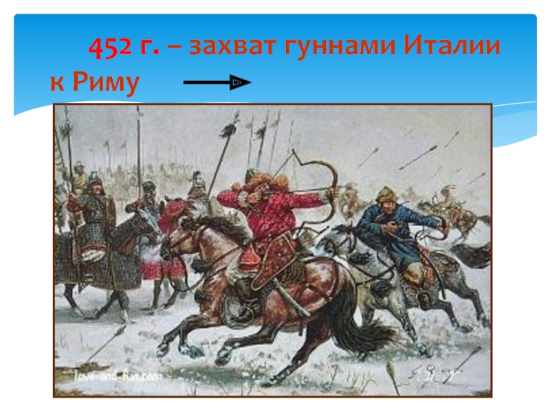 Слайд 16 452 г. – захват гуннами Италии