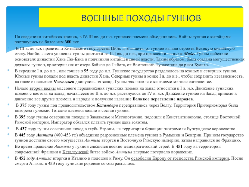 Слайд 17ВОЕННЫЕ ПОХОДЫ ГУННОВ