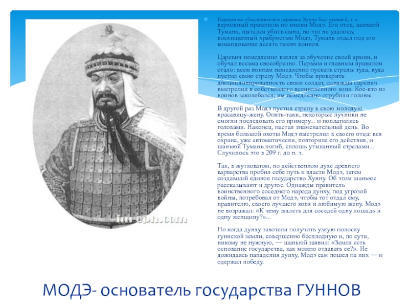 Слайд 9МОДЭ- основатель государства ГУННОВ