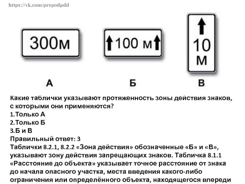 Какие таблички указывают протяженность зоны действия знаков, с которыми они