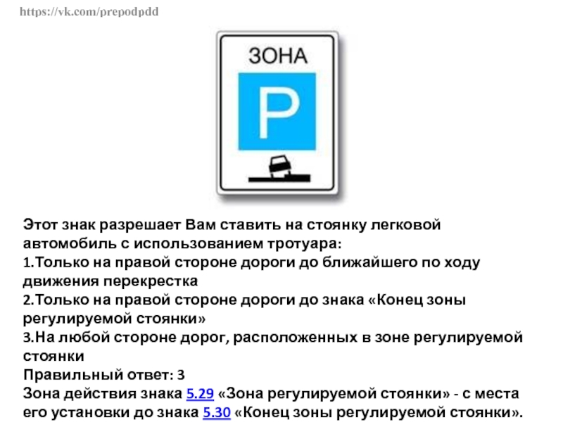 Зона действия знака 5.29 «Зона регулируемой стоянки» - с места его установки до знака 5.30 «Конец зоны регулируемой стоянки».