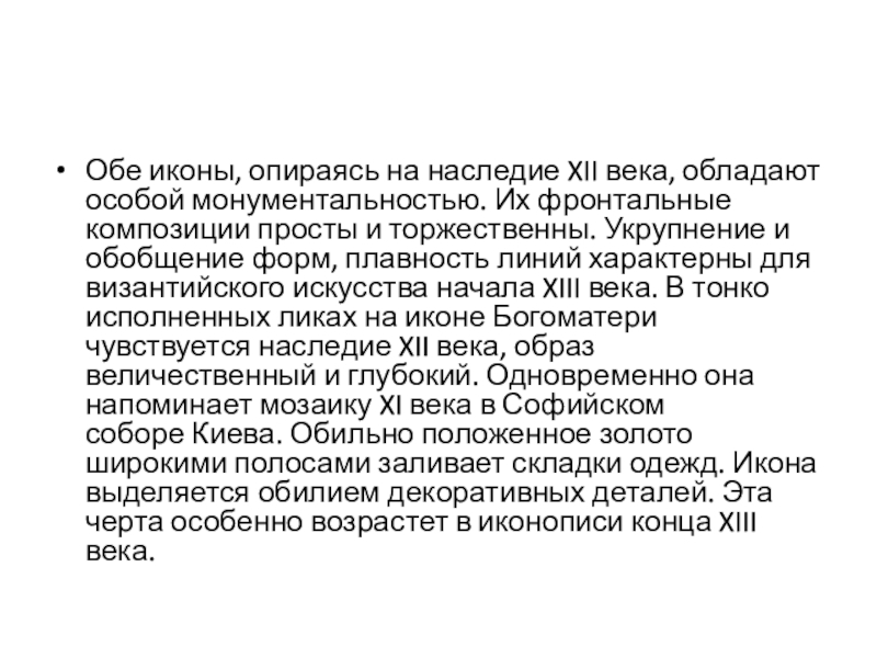 Слайд 5Обе иконы, опираясь на наследие XII века, обладают особой монументальностью.