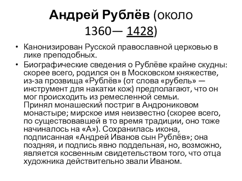 В 1425—1427 годах Рублёв, как свидетельствуют летописи, совместно с Даниилом Чёрным