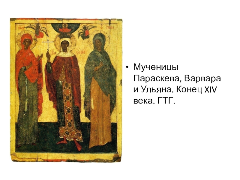 Слайд 20Мученицы Параскева, Варвара и Ульяна. Конец XIV века. ГТГ.