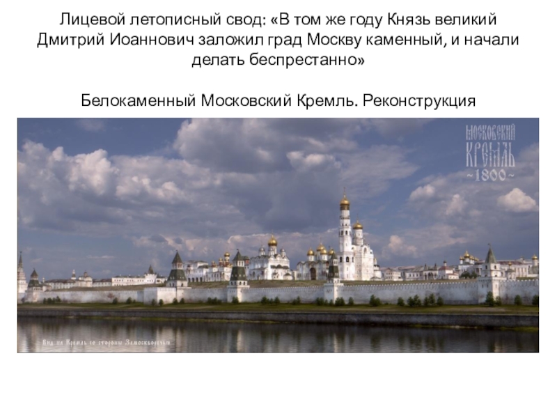были башни и наиболее важные части стены, откуда была наибольшая опасность штурма). С этого периода в летописях часто встречается название — «Москва белокаменная».
