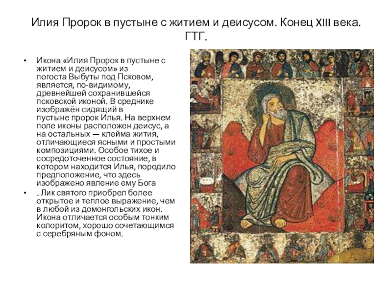 Слайд 14Илия Пророк в пустыне с житием и деисусом. Конец XIII