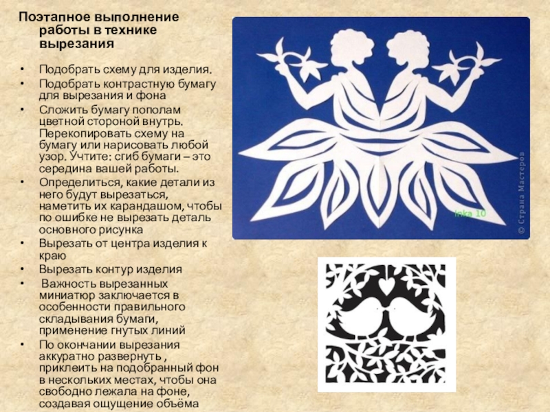Слайд 7Поэтапное выполнение работы в технике вырезания