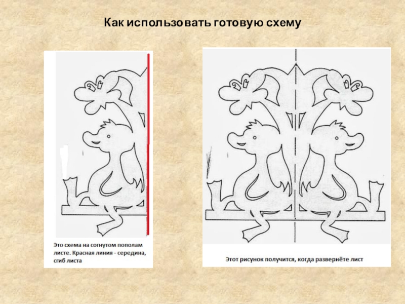складывается и режется ножницами. Бумагу лучше брать контрастную: тёмное изображение