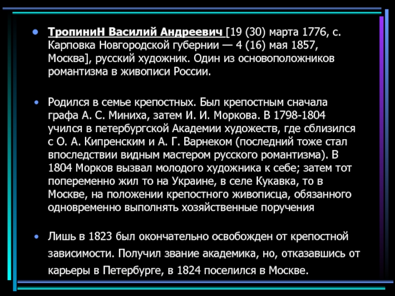 Слайд 9ТропиниН Василий Андреевич [19 (30) марта 1776, с. Карповка Новгородской