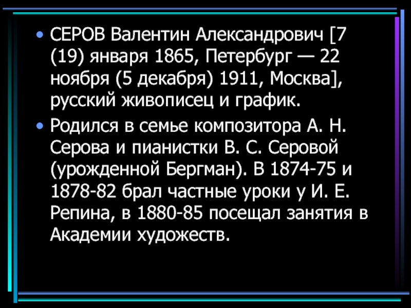 Слайд 14СЕРОВ Валентин Александрович [7 (19) января 1865, Петербург — 22