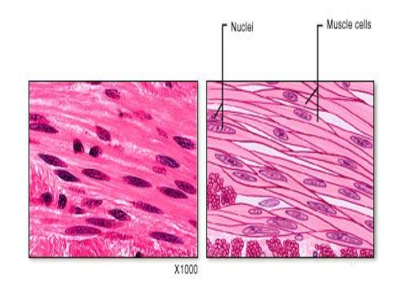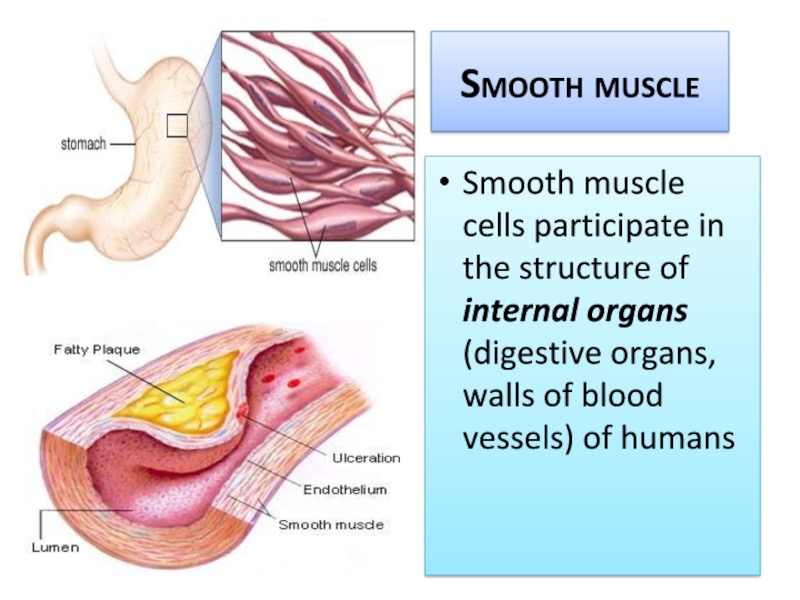 Smooth muscleSmooth muscle cells participate in the structure of internal organs (digestive organs, walls of blood vessels)