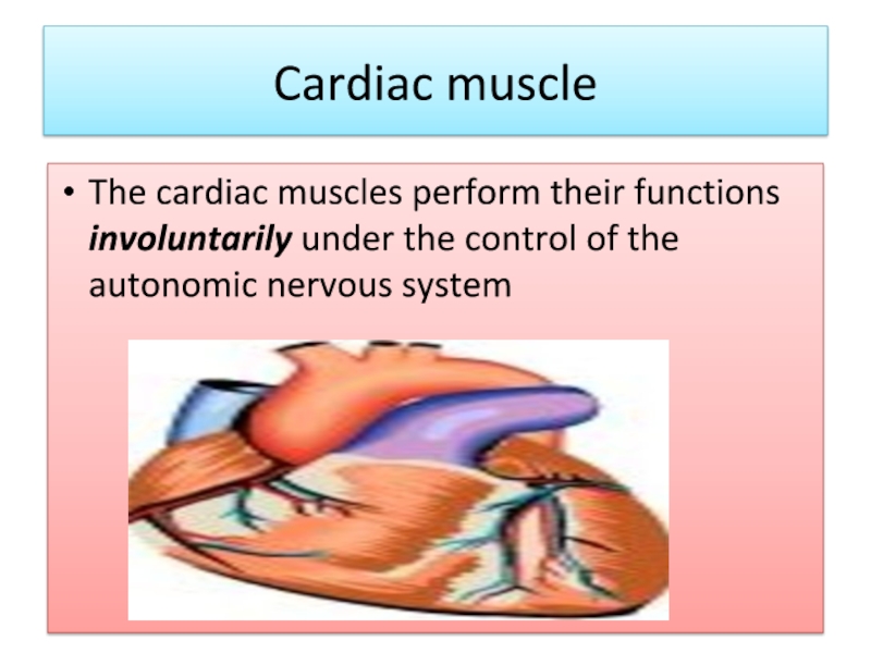 Cardiac muscleThe cardiac muscles perform their functions involuntarily under the control of the autonomic nervous system