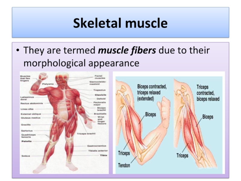 Skeletal muscleThey are termed muscle fibers due to their morphological appearance