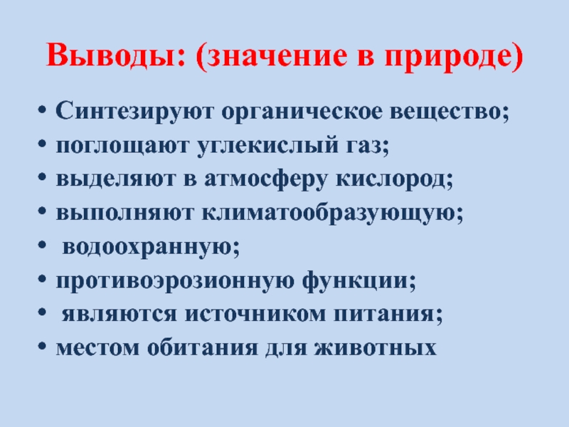 питания;местом обитания для животных